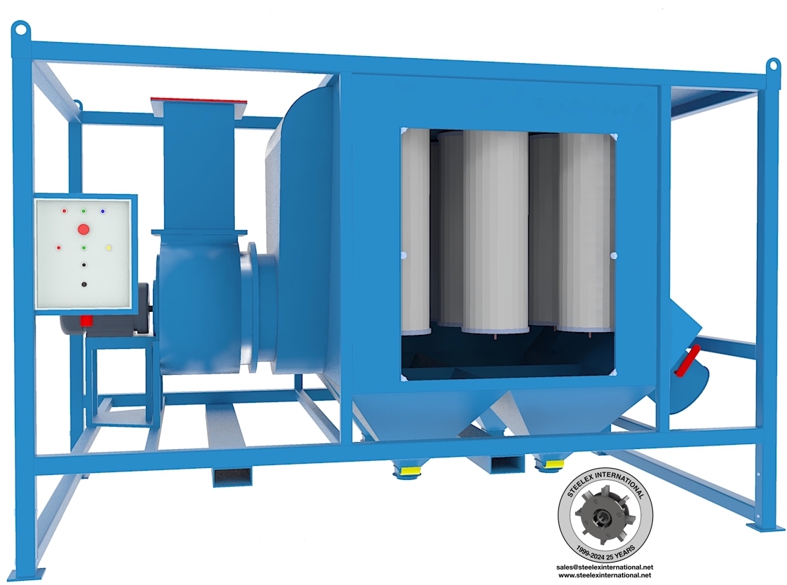 Steelint offers wide range of static and mobile dry dust extraction system for abrasive blasting application starting from 500 CFM to 50000 CFM customized to suit the application. The system is designed for the effective removal and collection of dust when blasting with steel grit and garnet. The units are dry type dust extractor with pleated filter cartridges, pulse jet cleaning of the filters and a side, roof or floor mounted high pressure centrifugal fan and is most effective when extracting from an enclosed area, the air changes and dust removal rate will depend on the volume of the area being extracted. Steelint recommends one air change every two minutes when blasting with steel grit and that an abrasive recycling system is used.